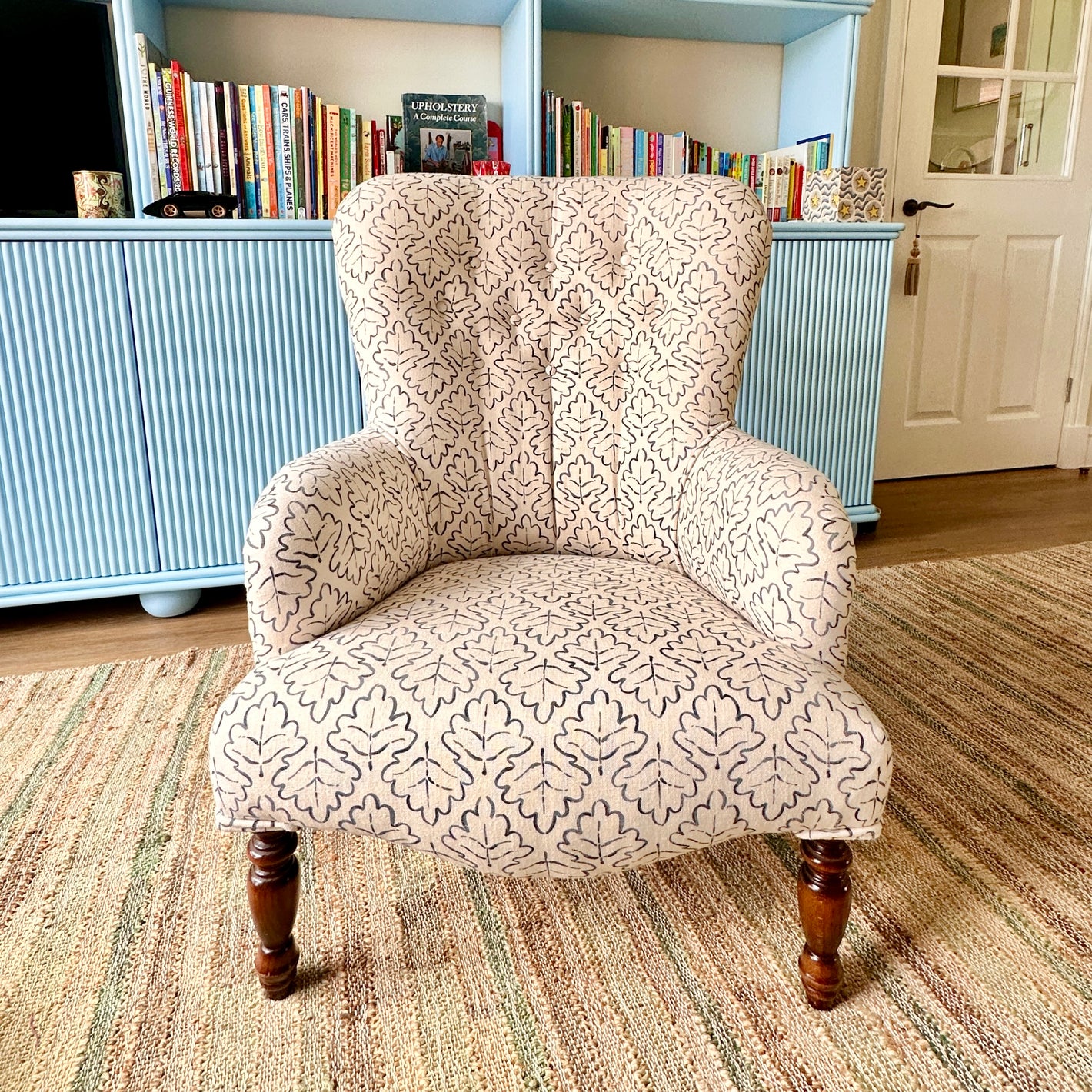 Re-upholstered armchair.
